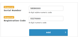 Enter the serial number and registration code for the Base Unit, then click [Add].